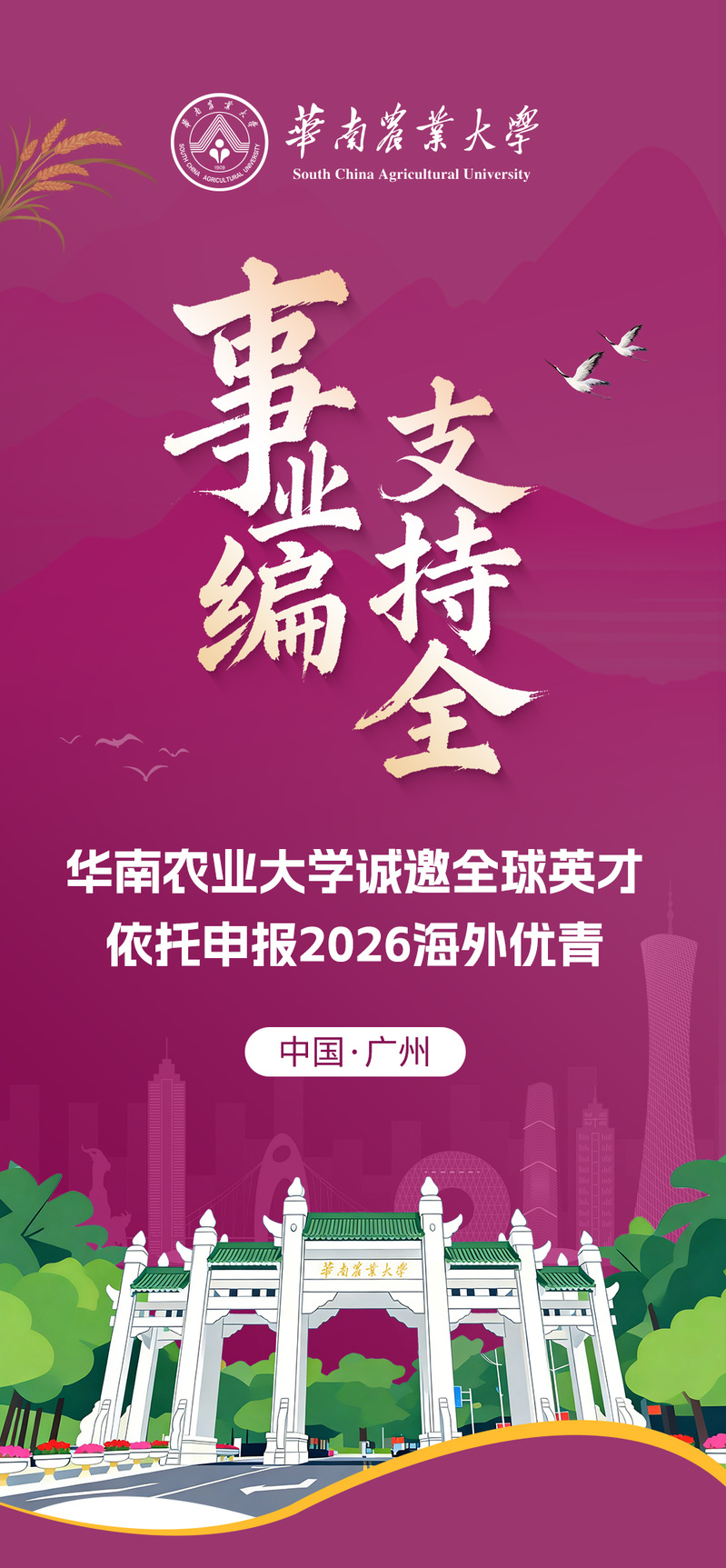 事业编 支持全 | 华南农业大学诚邀全球英才依托申报2026年海外优青!